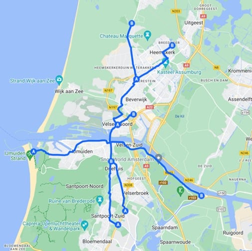 Op het plaatje hieronder zie je waar de doorfietsroutes in de IJmond liggen. Klik hier om de doorfietsroutes in Google maps te openen.